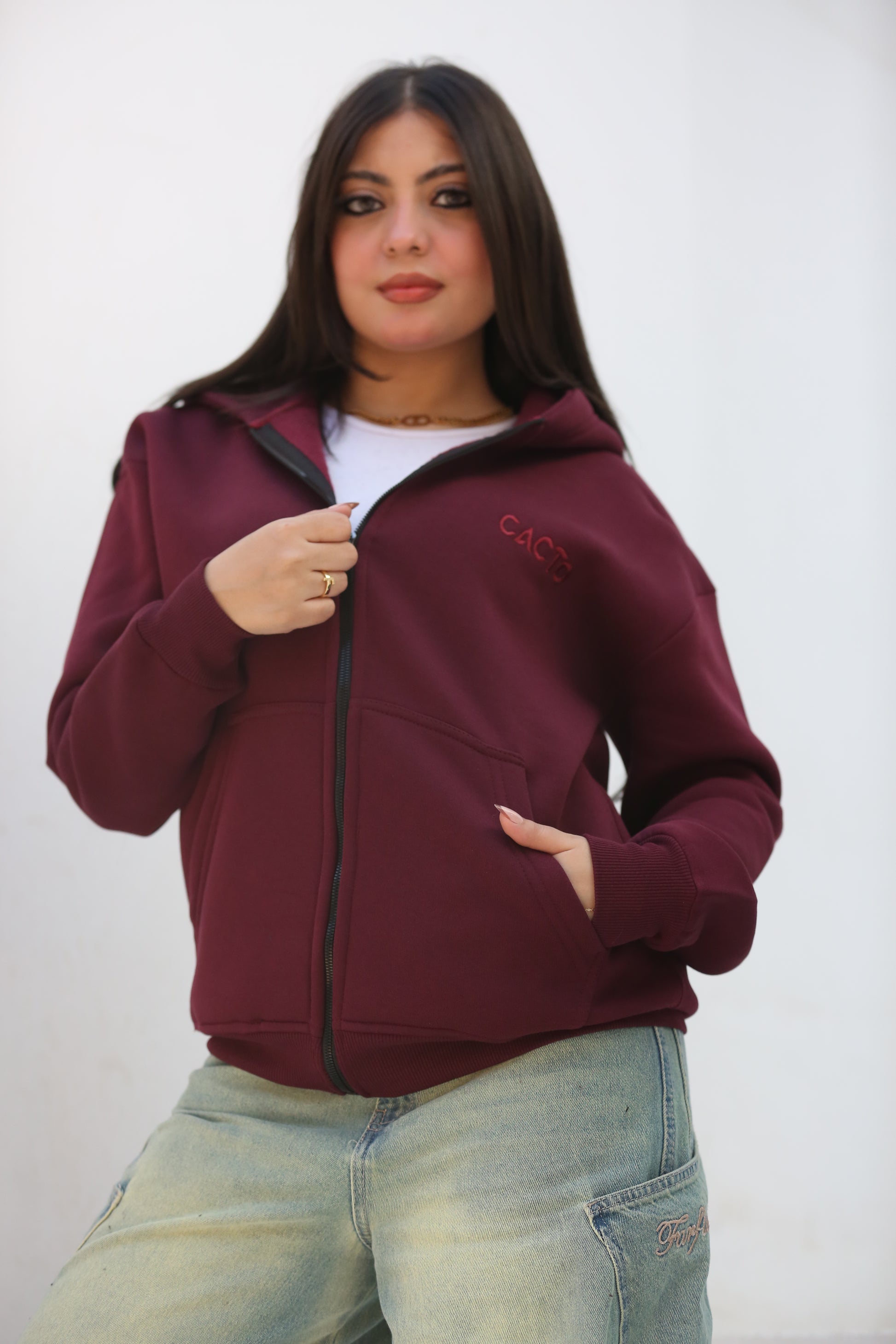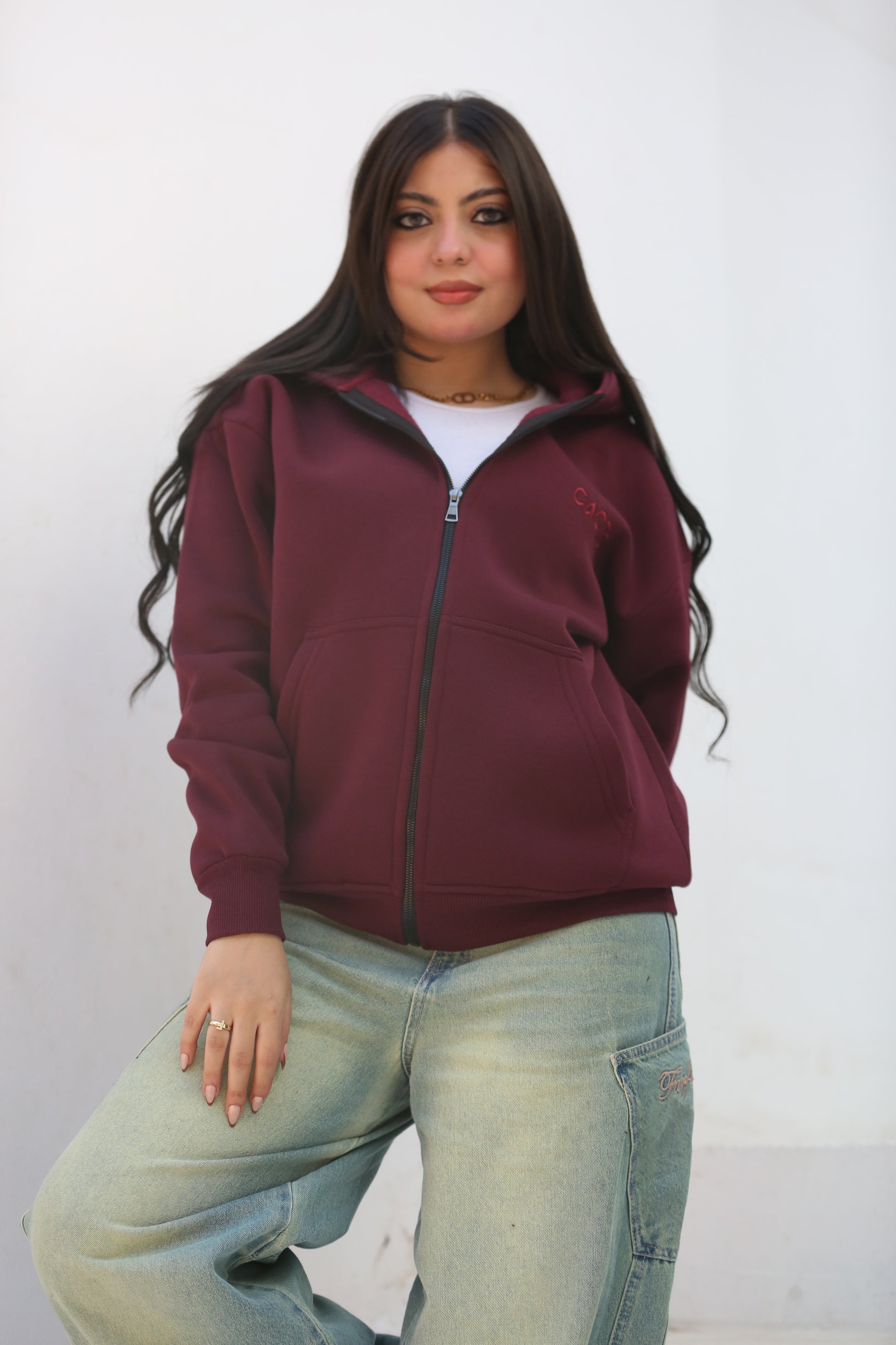 Burgundy Zipper Hoodie
